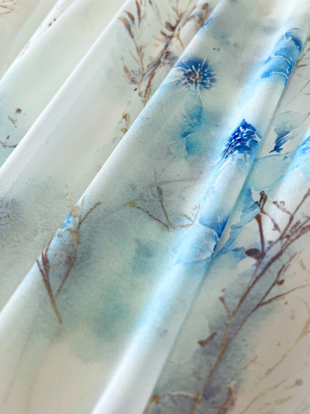 The elegant blue tone enhances the floral print, offering a refreshing and stylish look that never feels overdone.