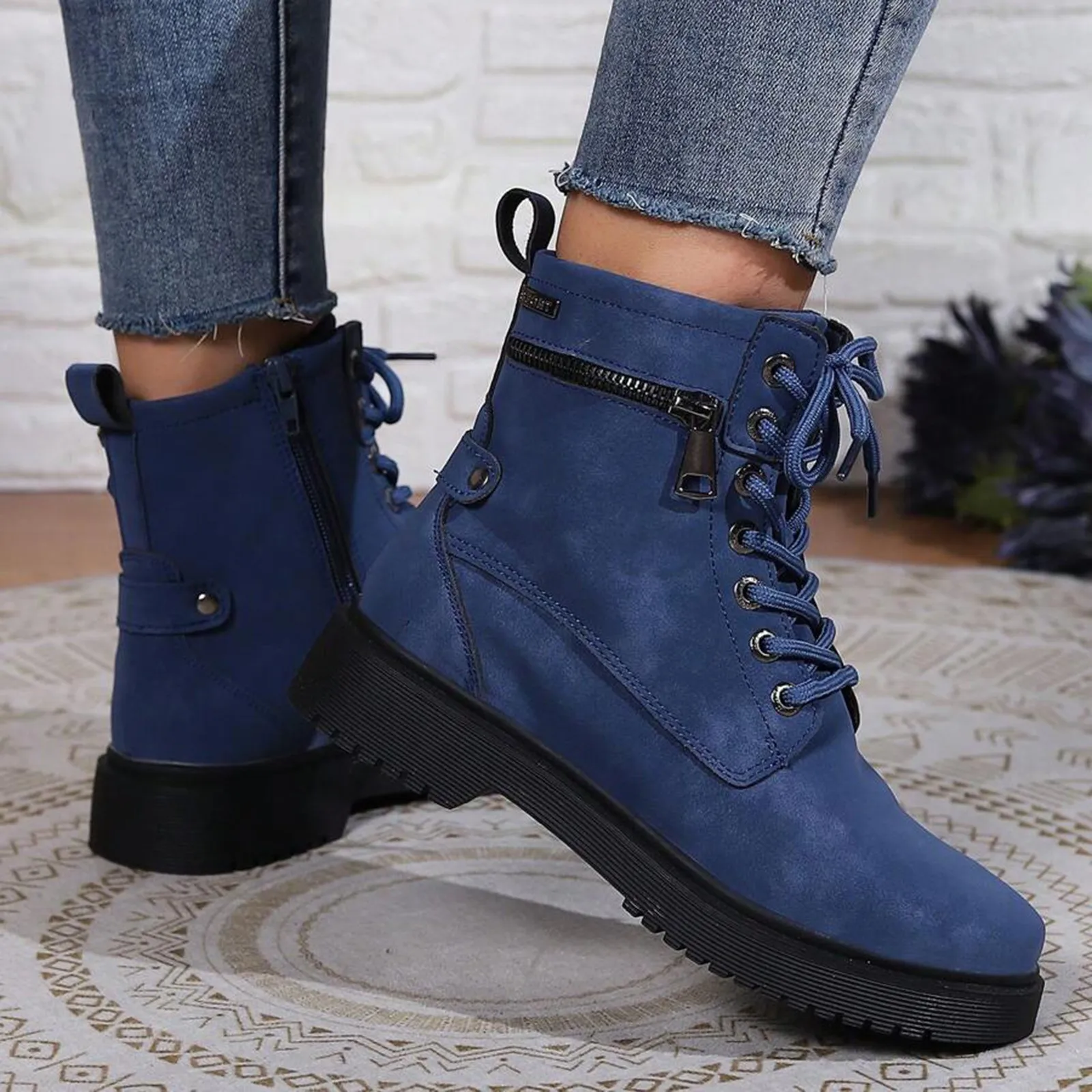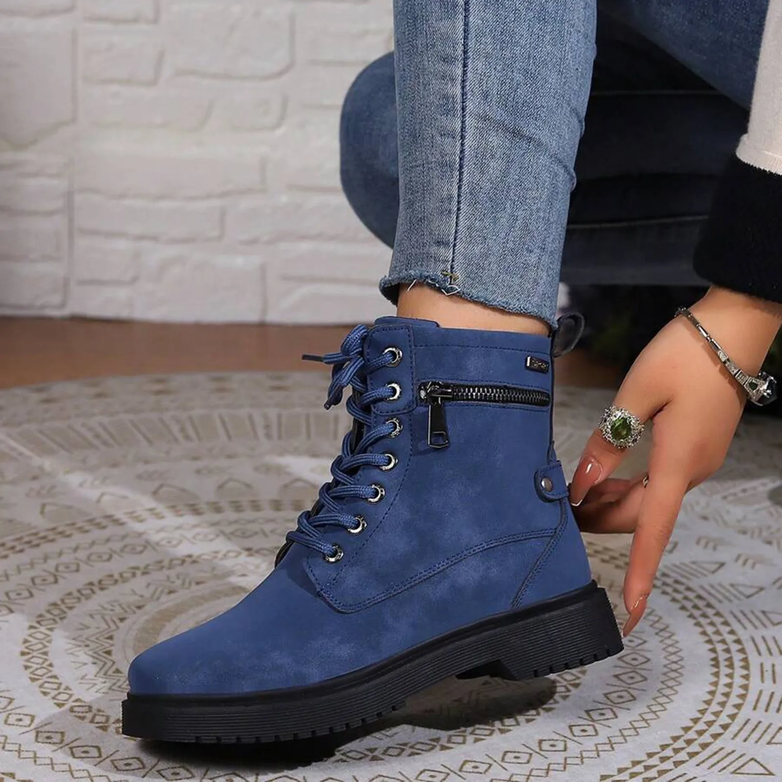 These British leather lace up winter hiking boots are designed for women seeking both style and functionality during cold-weather adventures. Crafted from high-quality leather, the British leather lace up winter hiking boots offer durability, water resistance, and long-lasting wear. The flat bottom provides stable footing, making the British leather lace up winter hiking boots suitable for both casual urban outings and light hiking.