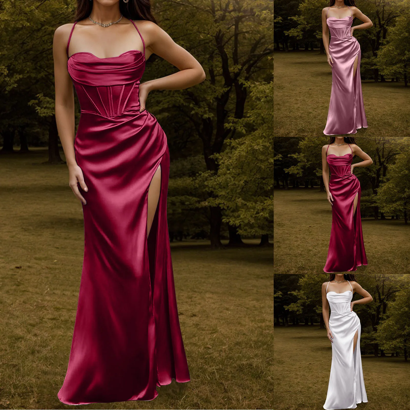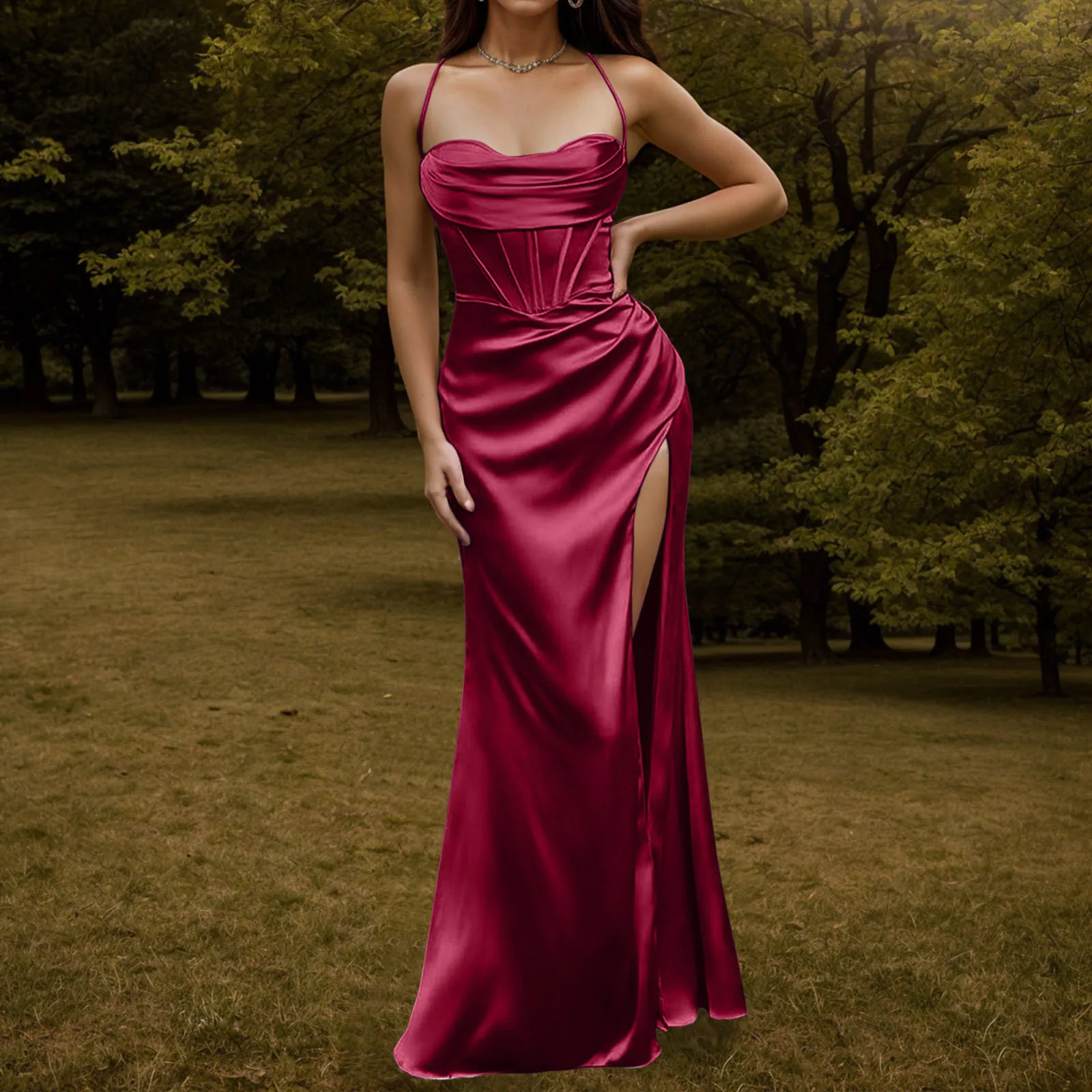 This Women Evening Dress combines sexy elegance with comfort. Perfect for summer parties or formal events, its satin finish, backless design, and flowing silhouette make it a must-have for stylish women.